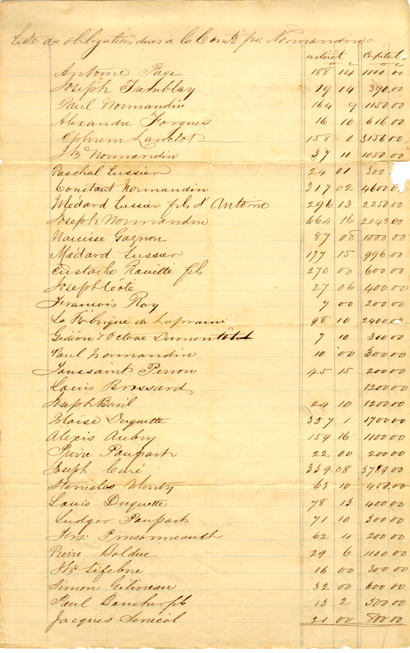 Les documents témoignent principalement d'évènements touchant la vie de Jean-Baptiste Normandin. On retrouve l'extrait de